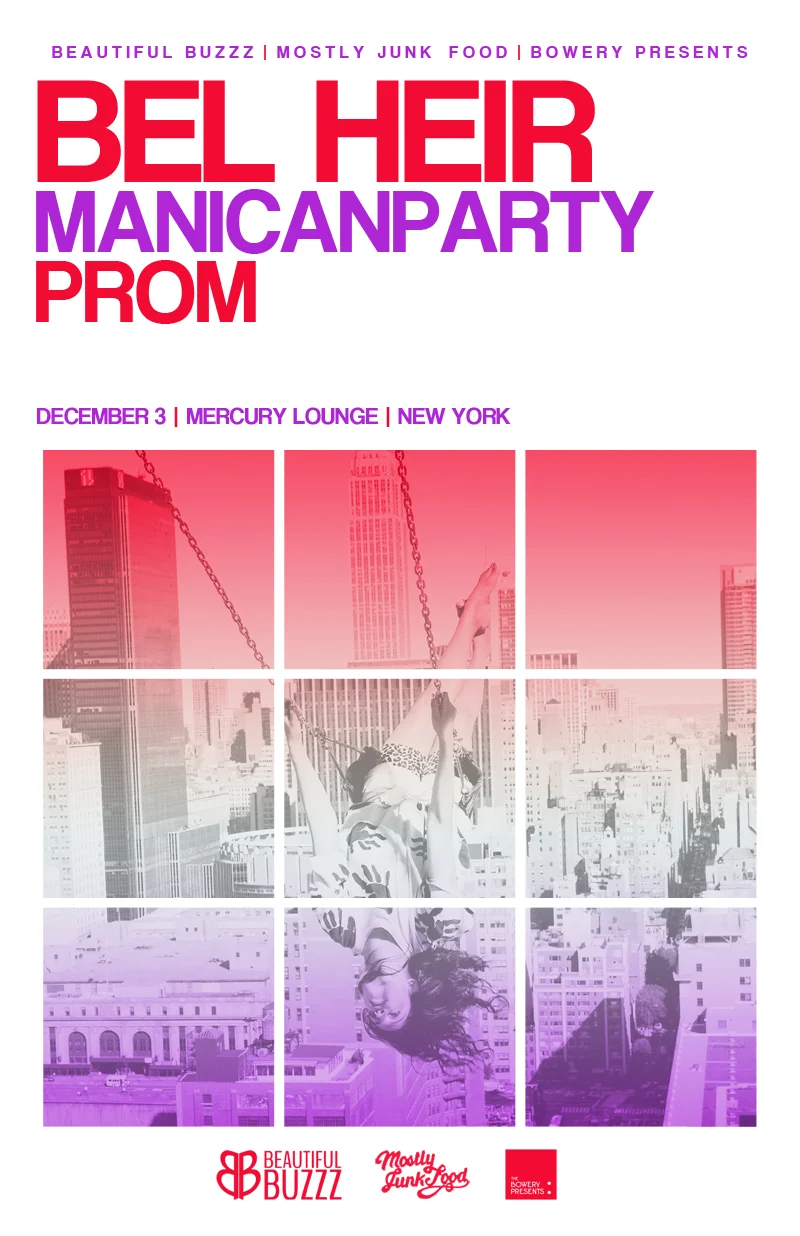 Who wants to go to our next show in NYC!! THIS is gonna be great! What better way to spend a Wednesday night than with Bel Heir, Manicanparty and PROM! All three bands are brilliant, so grab yout tickets HERE and get out to this show!