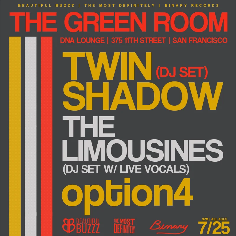 Words cannot express how happy this makes me! option4 is one of my most favorite emerging producers around! He's smashing with his sexy remixes and dance-a-licious originals! This new option4 remix of "Say The Words To You" by James Curd & Luke Million feat. Nah Man! is BANANAS!! This will be on repeat all weekend! Also, Beautiful Buzzz will be hosting option4's San Francisco debut live show at our next Green Room event with Twin Shadow - July 25! If you're in the bay area - you are not gonna want to miss this one kids! Tix on sale now - grab them HERE!
